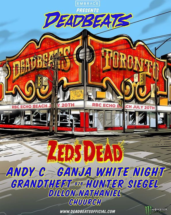 Zeds Deads’ Deadbeats festival is making its way back to Toronto! The event will take over Echo Beach on July 20th. Aside from Zed Dead themselves, the line up also features the legend Andy C, Ganja White Night, Grandtheft & Hunter Siegel (B2B), Dillon Nathaniel and Chuurch. It promises a wide array of sounds with a healthy helping of bass. This is a can’t miss! Cop tickets now.