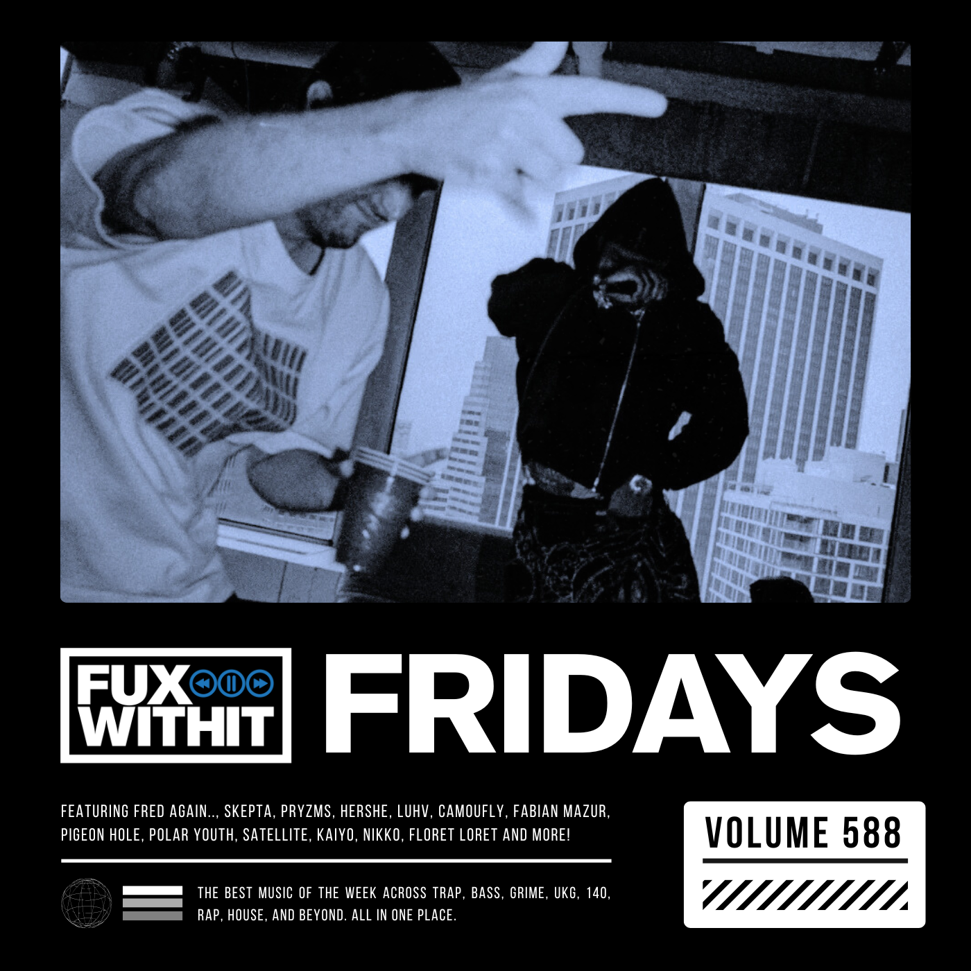 The best new music of the week is here! FUXWITHITFRIDAYS – 588 features music from Fred Again.., Skepta, PRYZMS, HerShe, LUHV, Camoufly, Fabian Mazur, PIGEON HOLE, Polar Youth, Satellite, Kaiyo, Nikko, Floret Loret, and more!
