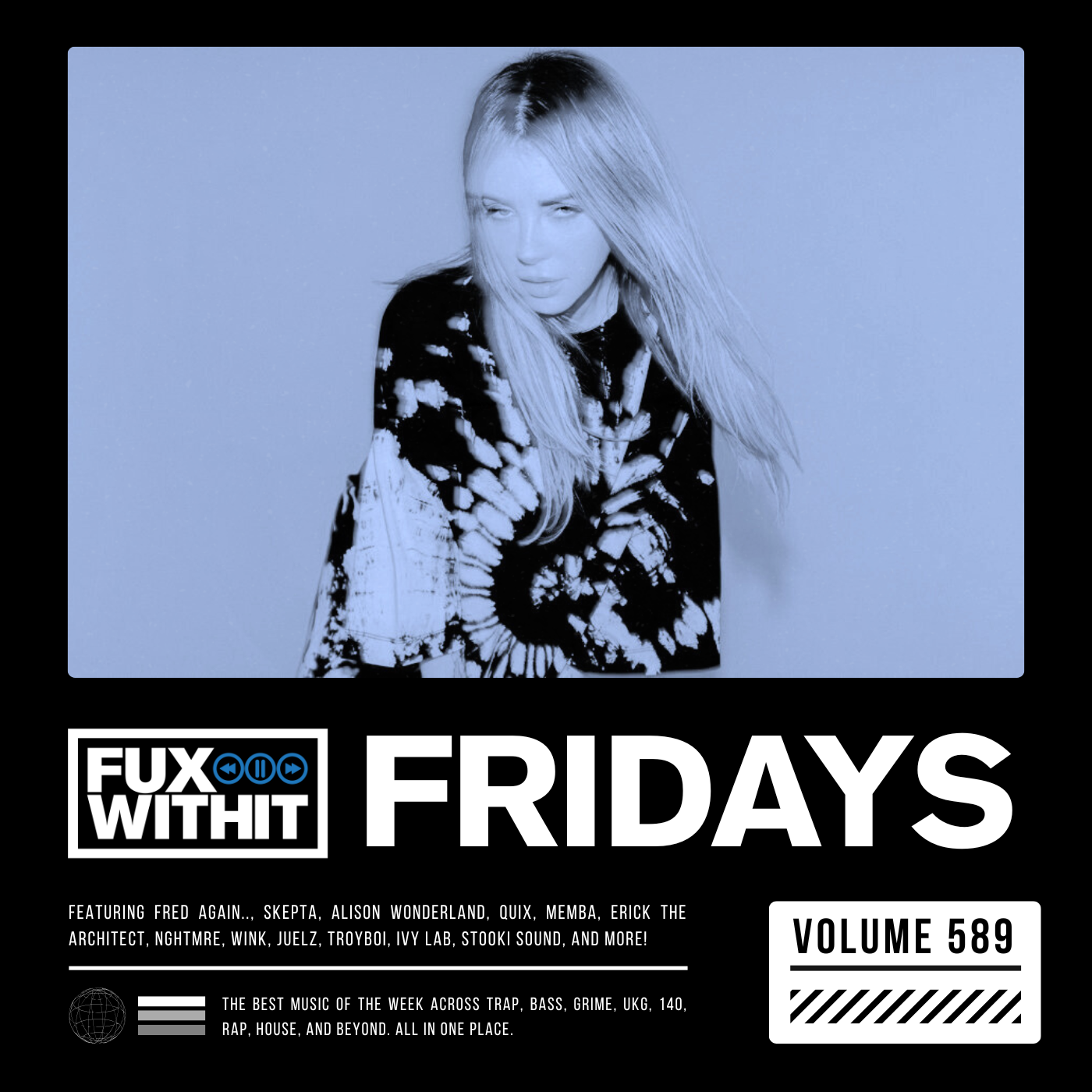 The best new music of the week is here! FUXWITHITFRIDAYS – 589 features music from Fred Again.., Skepta, Alison Wonderland, QUIX, MEMBA, Erick the Architect, NGHTMRE, WINK, Juelz, TroyBoi, Ivy Lab, Stooki Sound, Lethal Bizzle x Zero, Slackin beats, Rome In Silver, ZCR, 33 Below, RL Grime, Flume + more!